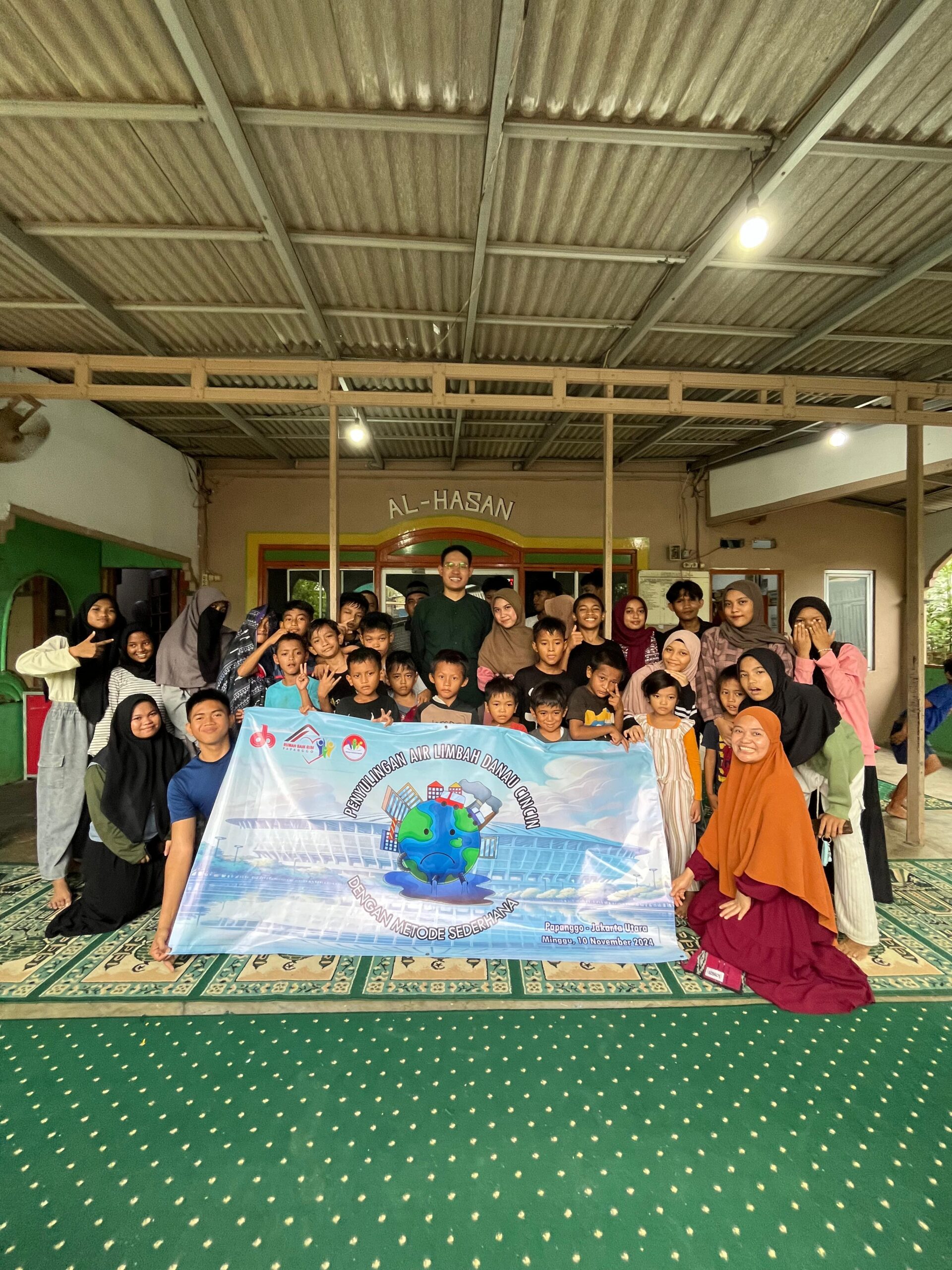 Seperti terlihat dalam foto, kebersamaan dan semangat terpancar dari wajah para peserta. Anak-anak, remaja, serta para relawan terlihat bahagia dan antusias saat mengikuti sesi edukasi ini. Spanduk kegiatan yang terpampang di depan menunjukkan semangat kolaboratif dan kepedulian bersama terhadap isu lingkungan.